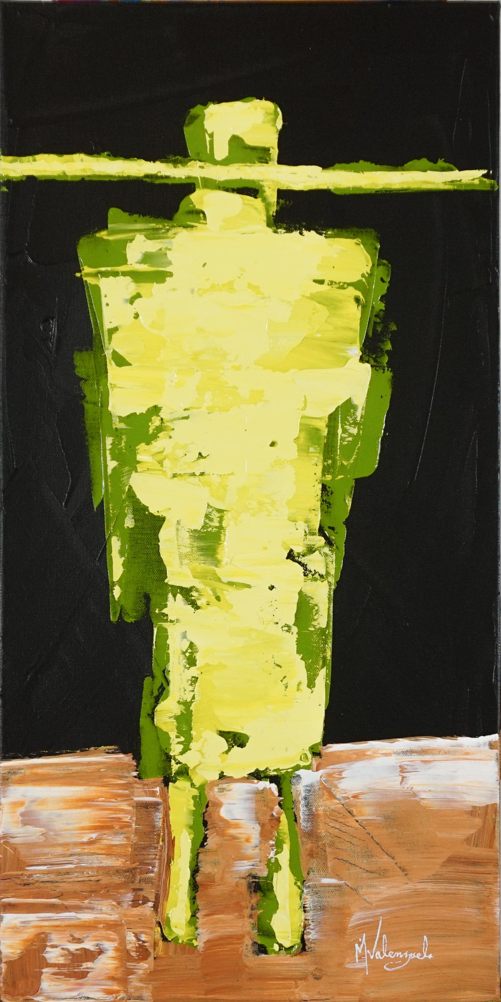 Manny mainly works with the Gaucho figures because it is representative of his rich heritage. The art appears simple yet contains a complexity that goes beyond what seems obvious. He loves creating paintings that stir up emotions. His style is minimalistic because of its ability to deliver the message with very little distraction. Some of the designs are derived from childhood memories and others represent his relationship with his family.
